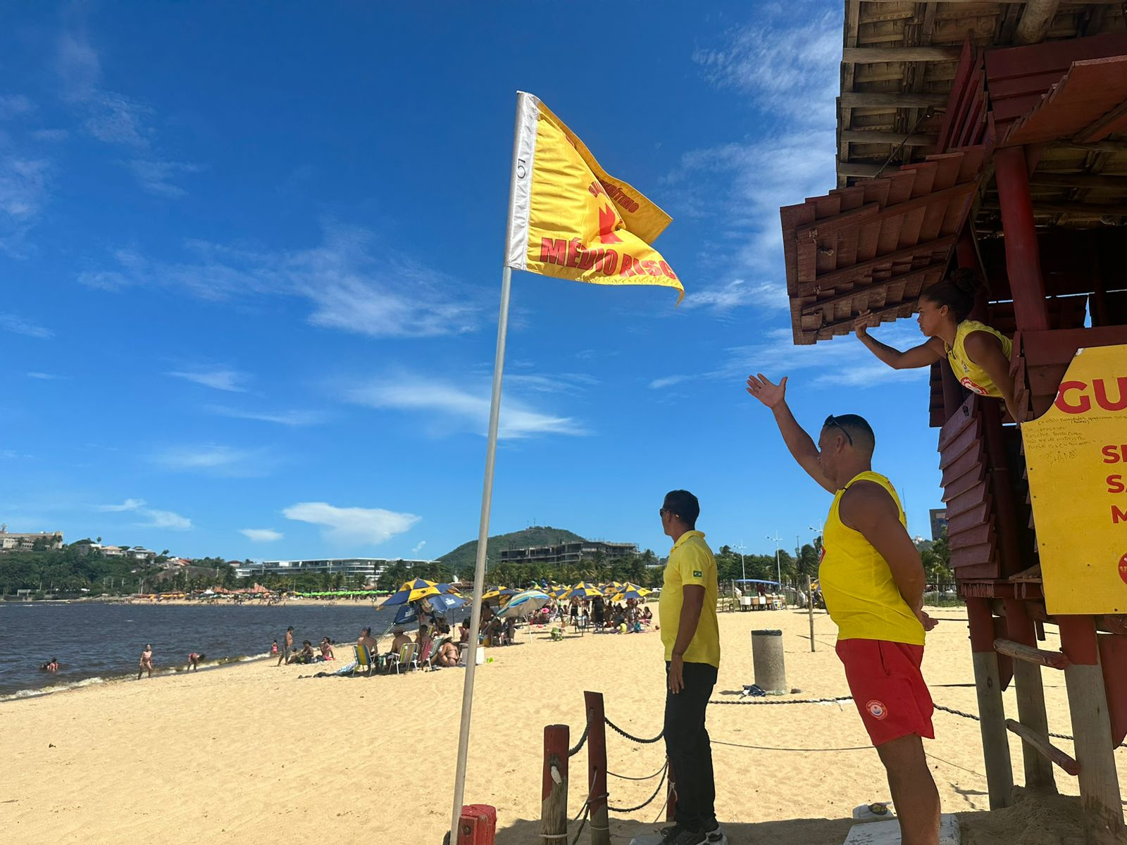 "As cores das bandeiras indicam as condições do mar e o nível de risco para o banho. A bandeira verde sinaliza baixo risco de afogamento; a amarela, risco moderado; e a vermelha alerta para alto risco, quando a entrada no mar não é recomendada. Ignorar essa sinalização pode colocar vidas em risco", explica Ednardo Dalmácio, coordenador do Grupamento de Salvamento Marítimo (Salvamar).