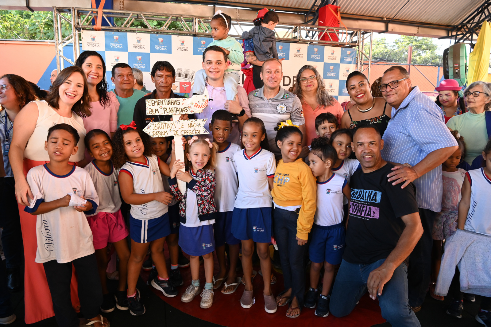 Quem fez questão de se juntar à comunidade escolar para realizar essa importante inauguração foi o prefeito de Vitória, Lorenzo Pazolini, acompanhado pela secretária de Educação, Juliana Rohsner. Em sua fala, Pazolini ressaltou a importância da participação efetiva das famílias na trajetória escolar das crianças.
