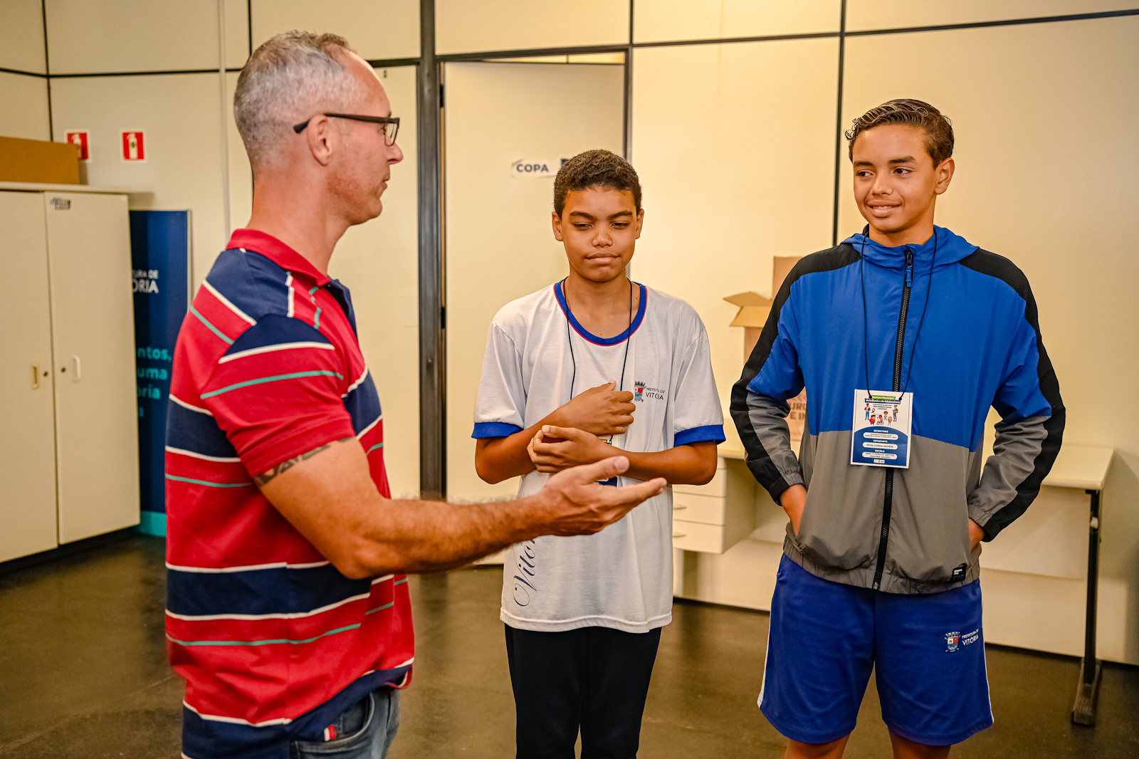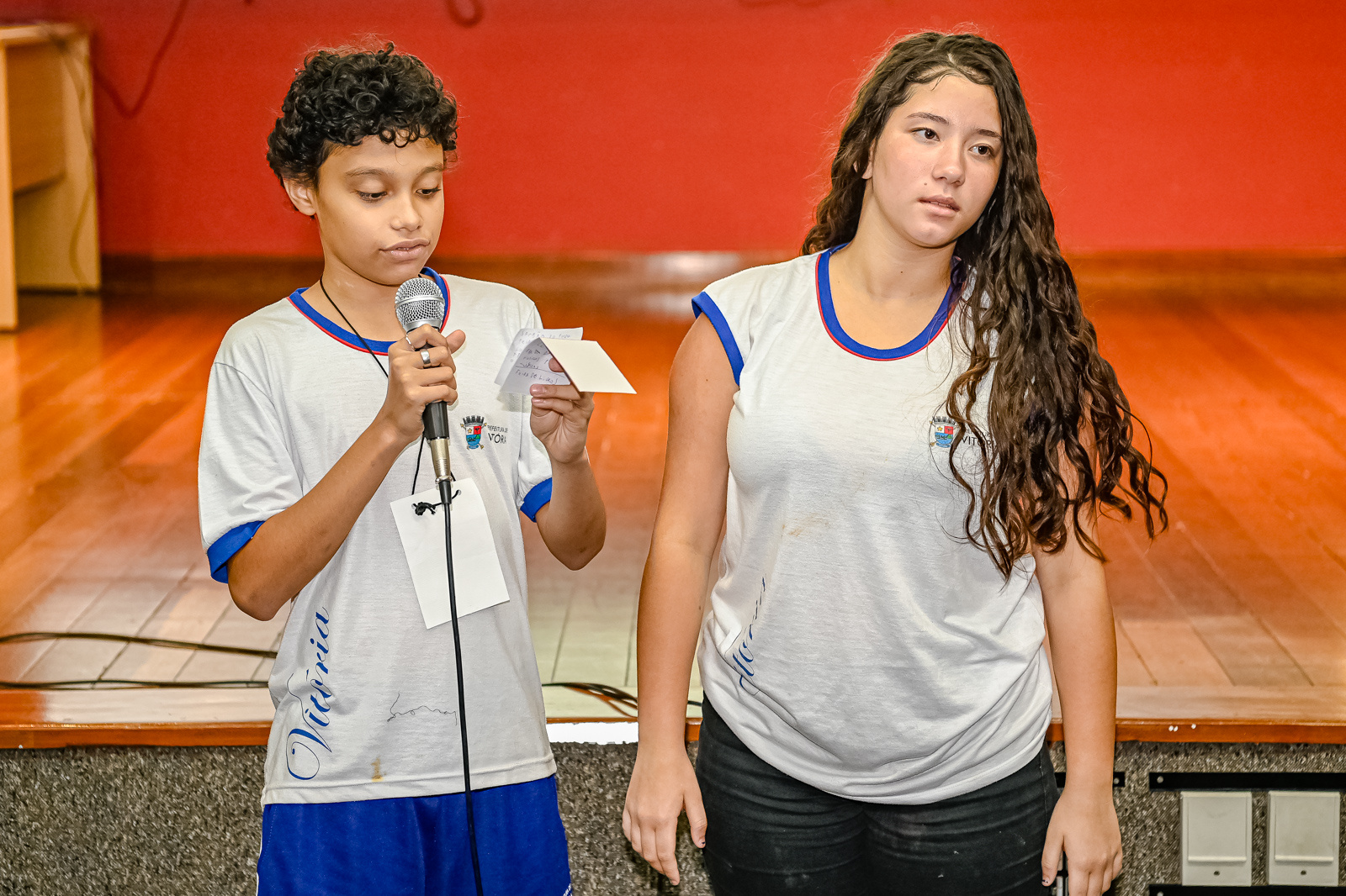 Thales Alves Souza, 5º ano, e Maria Eduarda Martins, 8º ano, da Emef Amilton Monteiro da Silva, que fica em Mario Cypreste, tiveram a oportunidade de vivenciar uma manhã como responsáveis pela Secretaria de Esportes e Lazer de Vitória. No início, participaram de um bate-papo para entender melhor o funcionamento do dia a dia de um gestor esportivo. Em seguida, exploraram diferentes setores do Centro Esportivo Tancredo de Almeida Neves, o Tancredão, desde o administrativo até o ginásio.
