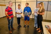 Acompanhados pelo secretário Rodrigo Ronchi, os estudantes participaram de reuniões importantes e visitaram locais onde funcionam projetos da secretaria, como os de ginástica artística, rítmica, balé e futsal.