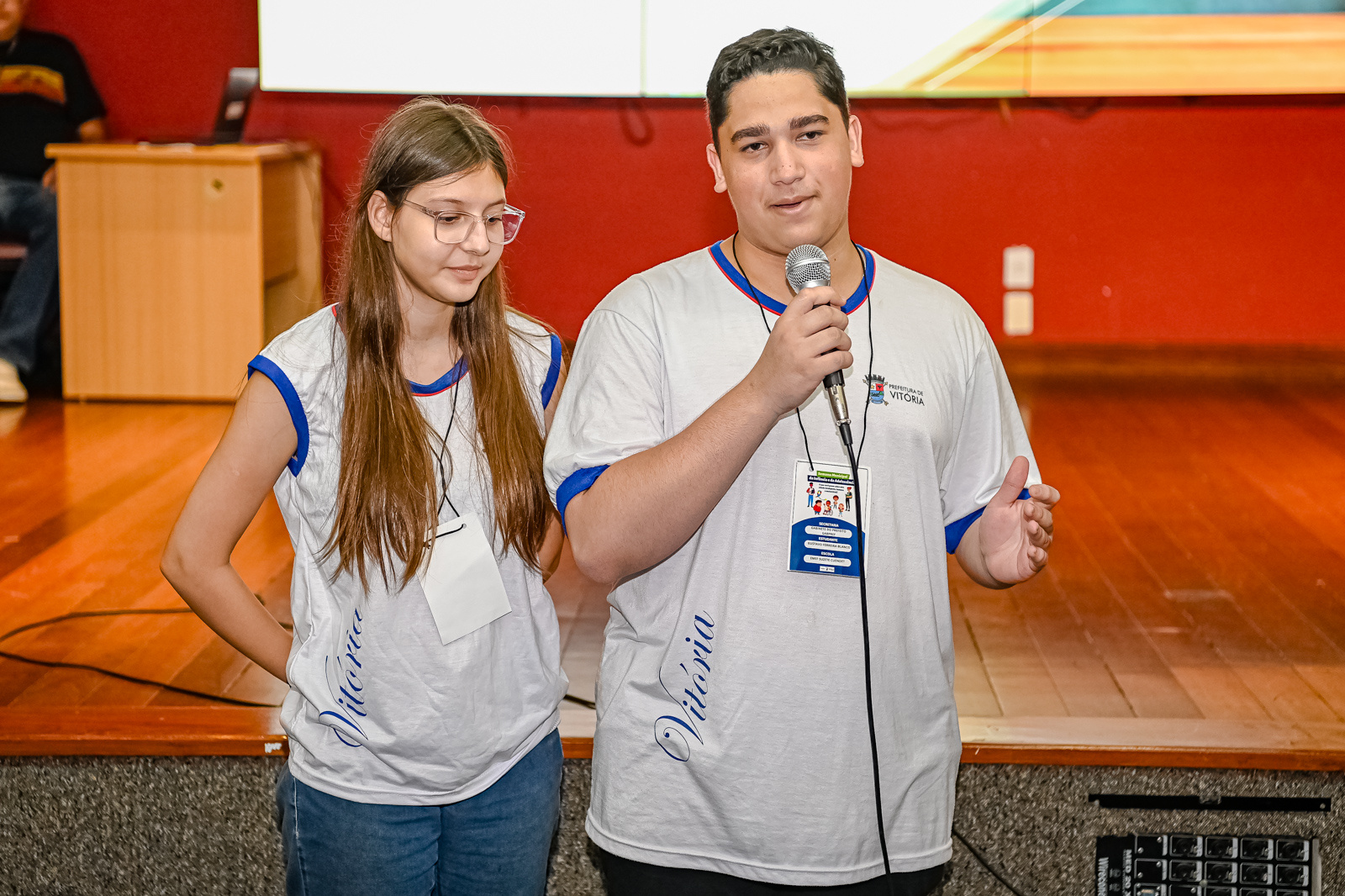 Ana Júlia Luzes, do 7º ano, e Nicolas Alves, do 9º ano, ambos estudantes da Emef Adílson da Silva Castro, localizada no bairro Monte Belo, tiveram a oportunidade de atuar como "Presidente por um Dia" na Companhia de Desenvolvimento, Turismo e Inovação de Vitória (CDTIV), como parte do programa educativo "Jovem Gestor Municipal". Durante a ação, os alunos conheceram de perto o funcionamento da Companhia e participaram de uma reunião com diretores e gestores das três pastas, onde aprenderam sobre as operações e projetos em andamento.