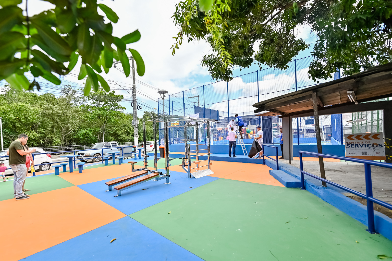O complexo também oferece uma nova Academia Popular, ampliando as opções de lazer e atividades físicas ao ar livre, incentivando hábitos saudáveis e a integração entre os moradores.
