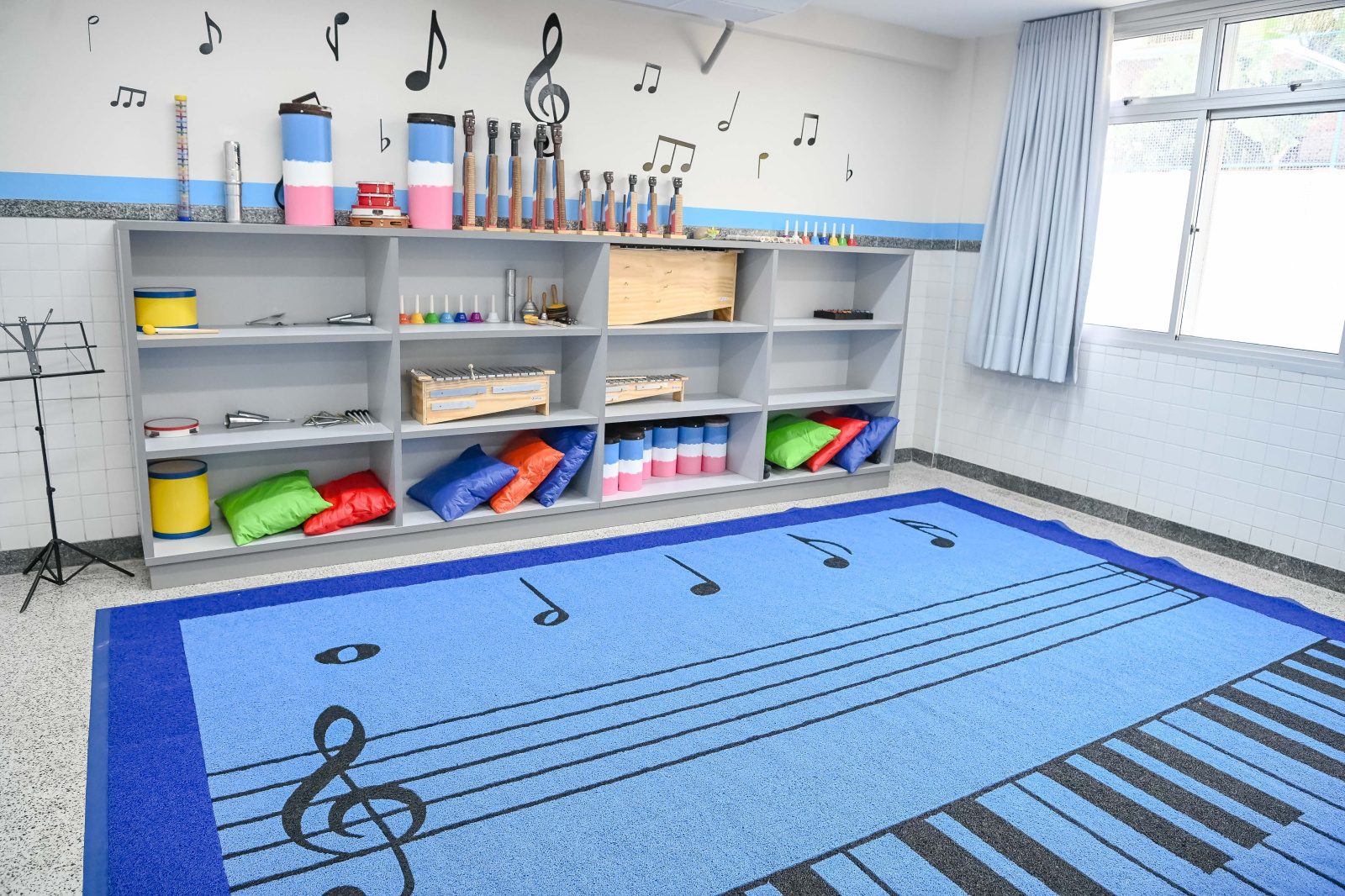 Na Educação Infantil, que atende crianças de 6 meses a 5 anos, o currículo contempla momentos de acolhimento, cuidado e descanso, além de ambientes temáticos e oficinas na pré-escola, nas quais as crianças escolhem livremente as atividades, fortalecendo o protagonismo desde a primeira infância.