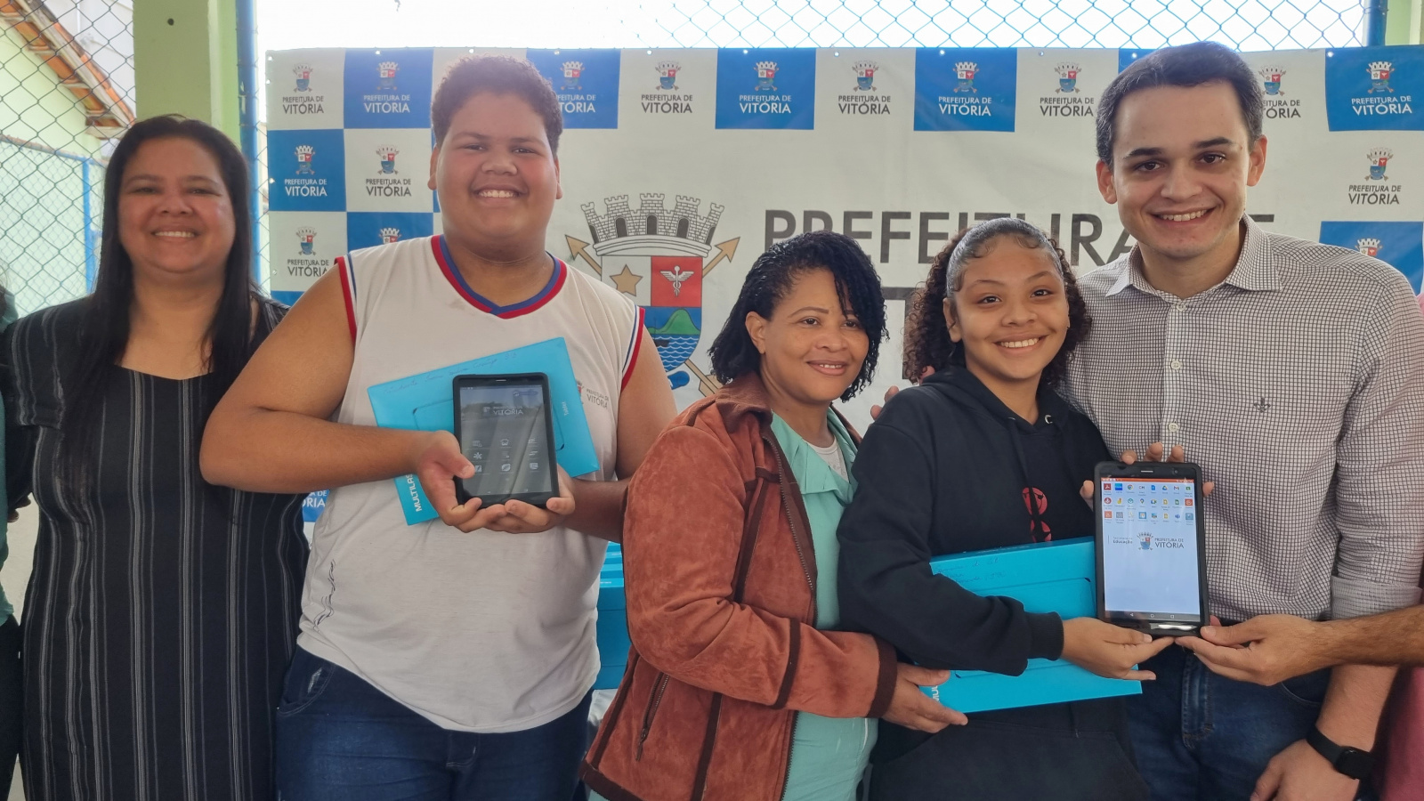 Mais entrega para a educação, investindo no futuro de mais de 43 mil crianças e estudantes da rede municipal de Vitória. Nesta quarta-feira (14), o prefeito de Vitória, Lorenzo Pazolini, acompanhado da secretária de Educação, Juliana Rohsner, entregou tablets com internet aos estudantes das Escolas Municipais de Ensino Fundamental (Emef) Adão Benezath, em Antônio Honório, e Ceciliano Abel de Almeida, em Itararé.