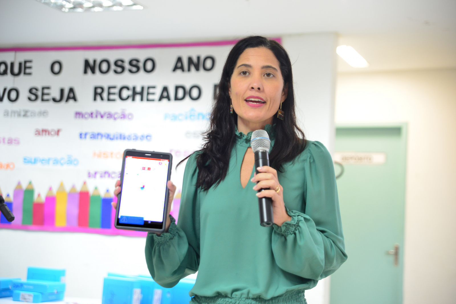 Líder de turma, Sarah Rocha Fernandes também falou sobre a importância de receber o tablet. "Viemos agradecer pela ferramenta, o tablet que vocês estão dando pra gente. Essa ferramenta será muito importante, agradeço a presença de vocês aqui. Vai ser muito útil pra gente".