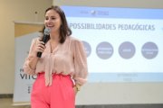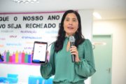 "Todos os estudantes de Vitória, do 5º ao 9º ano e da Educação de Jovens e Adultos, receberão o tablet com internet. É uma maneira da gente repensar a educação. Vocês já nasceram conectados, nessa era que a tecnologia é natural. Quais são as metodologias, os aplicativos, as formas de ensinar os conteúdos de uma maneira mais divertida para que vocês consigam se apropriar disso de uma maneira mais fácil? Estamos com cinco escolas para serem nossas referências e mostrar que é possível sim, que adolescente tem responsabilidade sim. Aqui tem diversos aplicativos que vocês vão conseguir brincar com as palavras e escrever melhor, participar de competições de matemática com estudantes do Brasil inteiro e, através de games, conseguir se apropriar essa aprendizagem. Desejo que vocês usem com consciência", disse a secretária Juliana Rohsner.